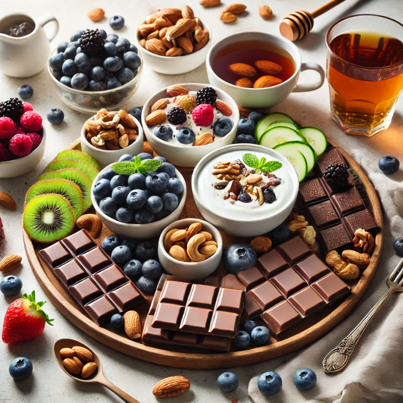 다크 초콜릿은 스트레스 완화 간식으로 가장 많이 추천되는 음식 중 하나입니다. 다크 초콜릿에 함유된 플라보노이드와 마그네슘은 뇌를 진정시키고 기분을 좋게 만들어주는 데 도움을 줍니다. 특히 70% 이상의 고카카오 다크 초콜릿을 선택하면 건강에 더 좋은 영향을 줍니다. 하루에 20~30g 정도의 소량으로 즐기면 충분합니다.
